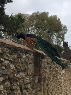 Castelo de Sao Jorge was built atop Sao Jorge hill, the highest point in Lisbon, in the 11th century. It now serves as an archaeological site and you can walk around to explore the many towers and learn about Moorish history. I’m not big into museums, but castles are another thing. Who doesn’t love castles!? Especially castles with amazing views and wild peacocks… and this place had both! While walking along one of the paths near the cafe (yes, there is now a cafe in the castle) suddenly, out of nowhere, I looked up to see a peacock just chilling on a ledge. A peacock. And not just one. There were loads of them! They were in the trees, on the roofs, and just casually wandering around on the grassy nooks. I’ve never seen a wild peacock before, and now I was face to face with as many as I could ever want. They didn’t seem fussed by everyone stopping to take their photos either, so I figured I may as well join in, cuz well, how often does a thing like this happen?!?