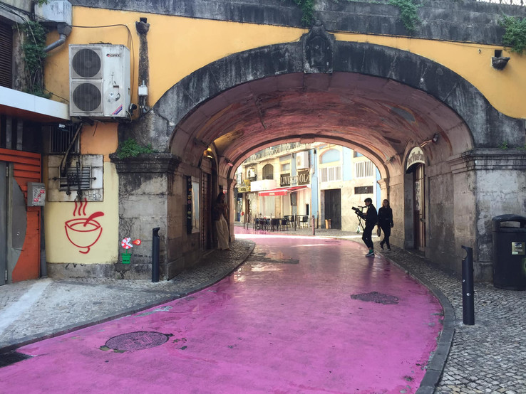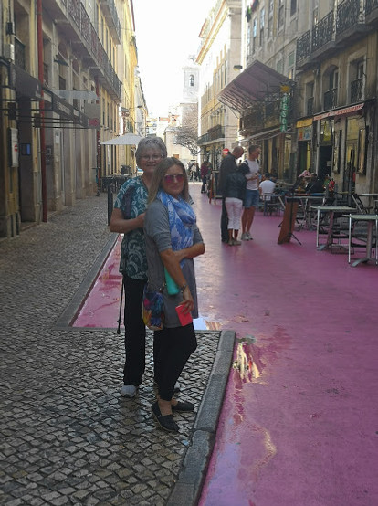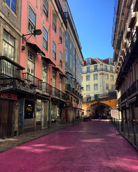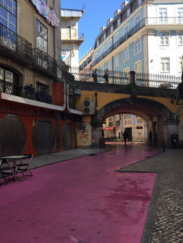 Later in the day, we accidentally found “Pink Street“. It was kind of a shock to find that the street we were casually walking down suddenly became bright pink. However, being the nerd that I am and having done some nightly research on the many things to see and do, at least I knew what we’d stumbled upon. Formerly Lisbon’s red light district, Pink Street is now known as a popular nightlife area filled with bars and cafes. And though we never got a chance to come back and check out any of the nightlife (just witnessed the cleaning up of what was probably a great night out for many), at least visiting during the daytime at least gave us a chance to get some good uninterrupted photos.
