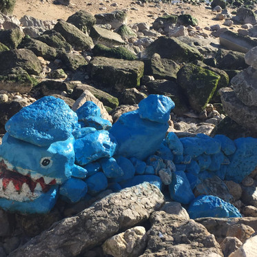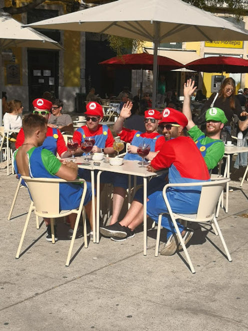 We began our exploring at the aptly named “Door to Lisbon” – the Arco da rua Augusta which stands in the main square and opens up into a long shopping boulevard. After ducking into a few shops to stock up on some warmer clothing (even though it was sunny and in the mid-teens, coming from Bangladesh I found myself freezing in “the cold”), we wandered down to the waterfront promenade. The weather was nice (despite my arguments to the contrary) so there were a lot people out on the patios having a drink (even a bachelor party all dressed as Mario characters), or sitting on the coastal rocks soaking up the sun and checking out local artwork (like painted rock animals).