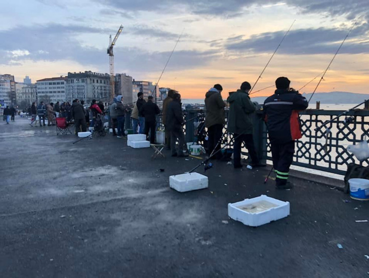It was a short downhill walk towards the water, past people on their morning commute, shopkeepers sweeping the sidewalks in front of their stores, early morning run groups, and then finally to the Galata bridge, where the sweet (or not so sweet) smell of fish filled the air.