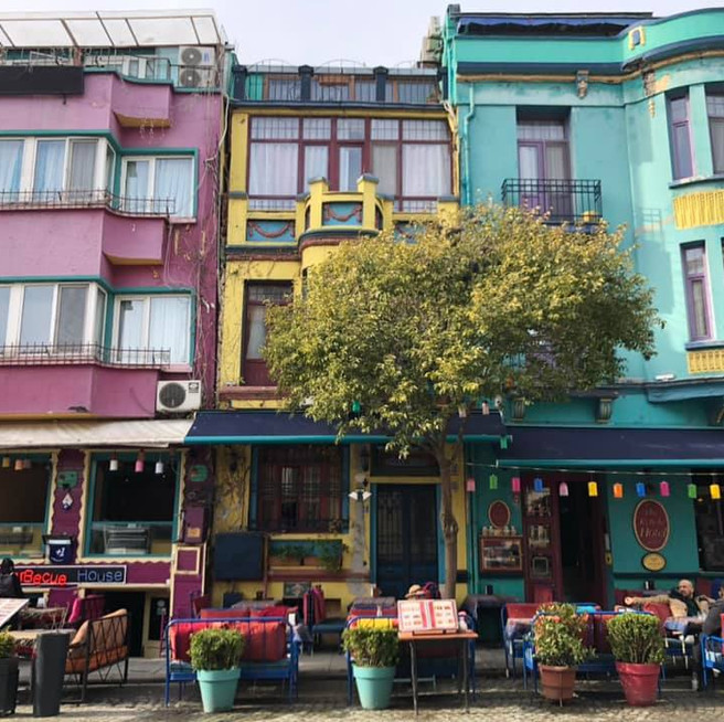 We left Sultanahmet square and walked west, past the Basicila Cistern (a massive underground water cistern filled with beautiful marble columns, since closed for restoration). After a week of very little alcohol, we wanted a place where we could sit down and enjoy a beer… (we were still on vacation after all!). We opted for the cafe at Kybele Hotel.A brightly painted building with a fun Boho-eclectic vibe. The inside was even cuter than the outside, and judging by the number of people posing for photos with the decor, probably a very popular Instagram spot too. After a couple of beers, and chatting up the waiter who was coincidently due to move to Edmonton in the coming year, we decided to call it a night.