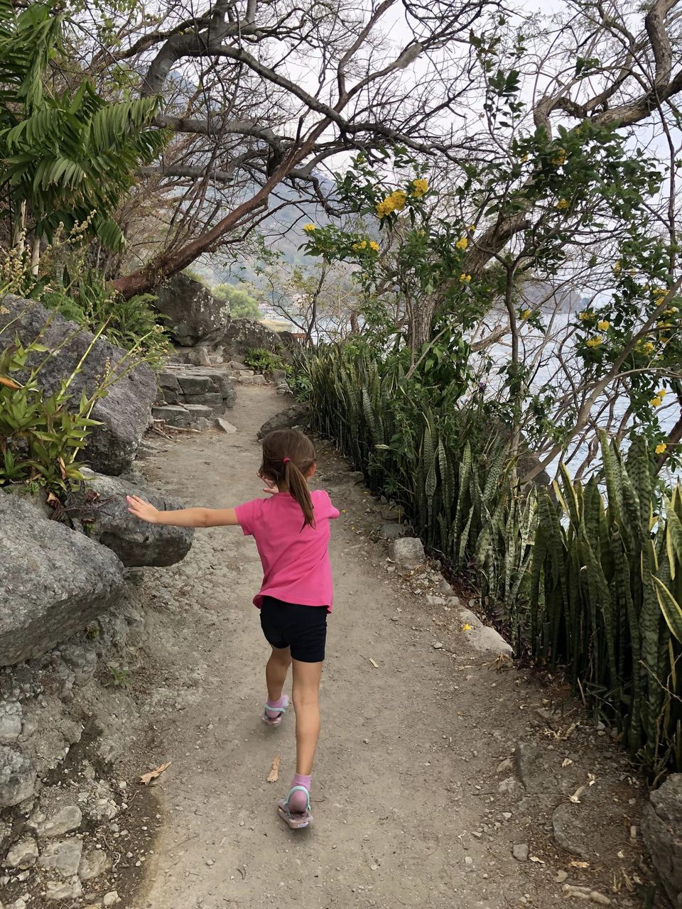 a) San Marcos la Laguna – a hippy vibe like no other. You literally couldn’t find someone that didn’t embrace the lifestyle, whether it was dreads, bare feet, bra-less women, or loose boho apparel, it was all covered (or not covered if you know what i mean). It’s got unique shops and cafes for the adults down the narrow main uphill drag (kid friendly though – mine had a solid nap on a pillow-filled couch while we sipped on turmeric lattes), but the place the kiddos will love is a small beach beside a rarely used dock. To find it, go left when you get off the ferry pier and follow the signs along the winding back alleyways, past the many hostels and yoga retreats, for the Reserva Natural Cerro Tzankujil. The beach is right below the entrance – just pop down the stairs. And best of all, it’s free! Also, the Reserva Natural Cerro Tzankujil is also a really nice, short hike that takes you to a 12m dive platform. It’s really quite pretty and M had fun climbing up all the rocks, while A, of course, didn’t pass up an opportunity to hurl his body off a cliff and into the water below.