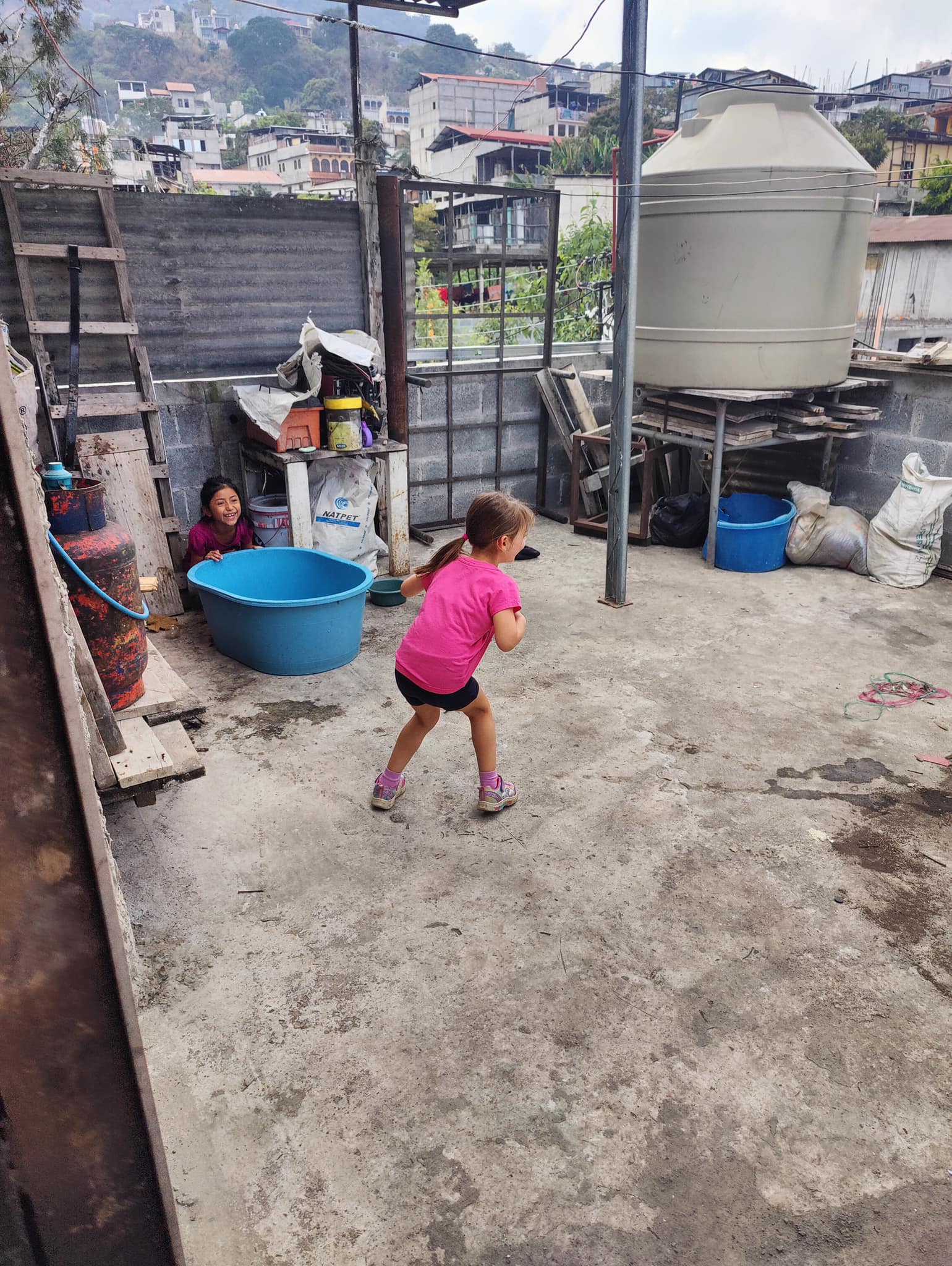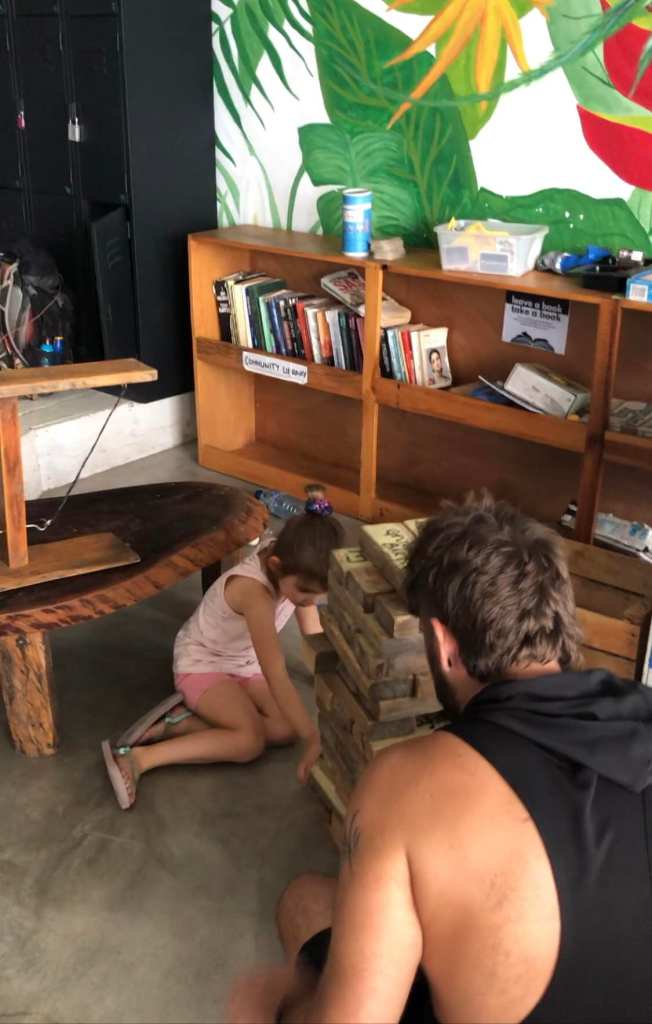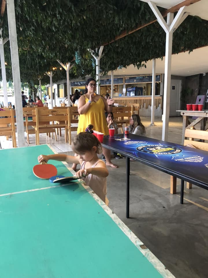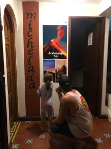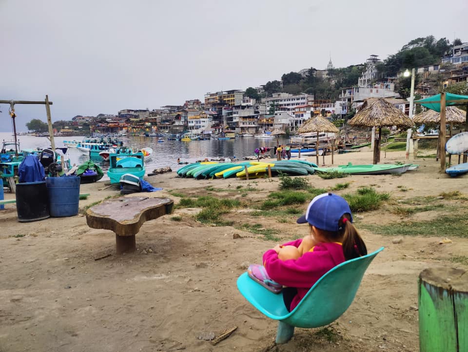 B) Santa Cruz la Laguna to the Free Cerveza hostel for their beer hour. I know it doesn’t sound like the most kid-friendly location, but hear me out. From the pier you take a lakeside walk to get to the hostel. But whether or not you make the stop at the hostel, keep on going along the path for a fun little adventure all on its own. You’ll find a couple of swings overlooking the lake, some banana phones (imagination required), bamboo forests, and lots of climbing up, down, through and around things. But when you make it back to the hostel (because you should), you’ll be rewarded with more fun. The hostel features a terrace common area with fantastic lake views. There are also a ton of games here – ping pong, air hockey, Jenga, board games, plus great music, bean bag chairs and dress up clothes. They had no problem with M being there and we were welcomed with open arms. The beer hour is included in the hostel room price (which is announced by all the staff yelling out “Free Cerveza!” at it’s commencement), but as a non-guest you can just pay an upfront fee of around $10 CDN and it includes unlimited beer and a set meal, which everyone is served after the beer hour (pizza while we were there). We ended up spending a couple hours at the hostel and we all had a blast! Just make sure you don’t miss the last taxi back to where you’re going, as beer hour is fairly closely to the last ferry time!