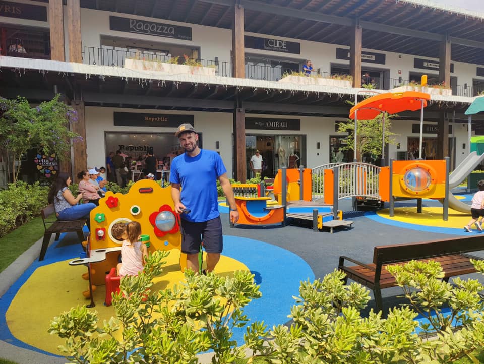 Finally, inside Telares Mall Antigua, is a secret playground that we had a hard time dragging M out of. It’s located in the interior courtyard of a modern mall and was a fun accidental find as we were looking for SIM cards. There are tons of stores, coffee shops (I think even a Starbucks), an arcade, restaurants and it’s incredibly clean and beautifully manicured. A perfect place if you want to browse around the shops, grab an appy, or sip coffee while you watch the littles play.