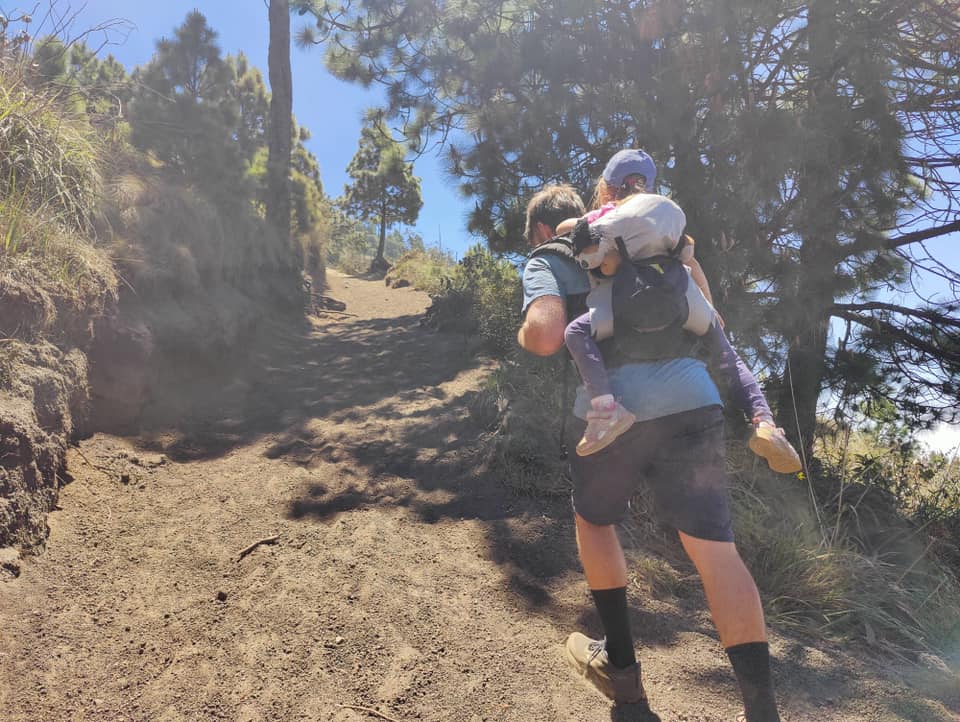 a) Because it is a lot of hiking (straight up) bring a hiking backpack. We literally used her baby carrier backpack because she was still within the weight limits of it and it’s lightweight and squeezes up pretty small.