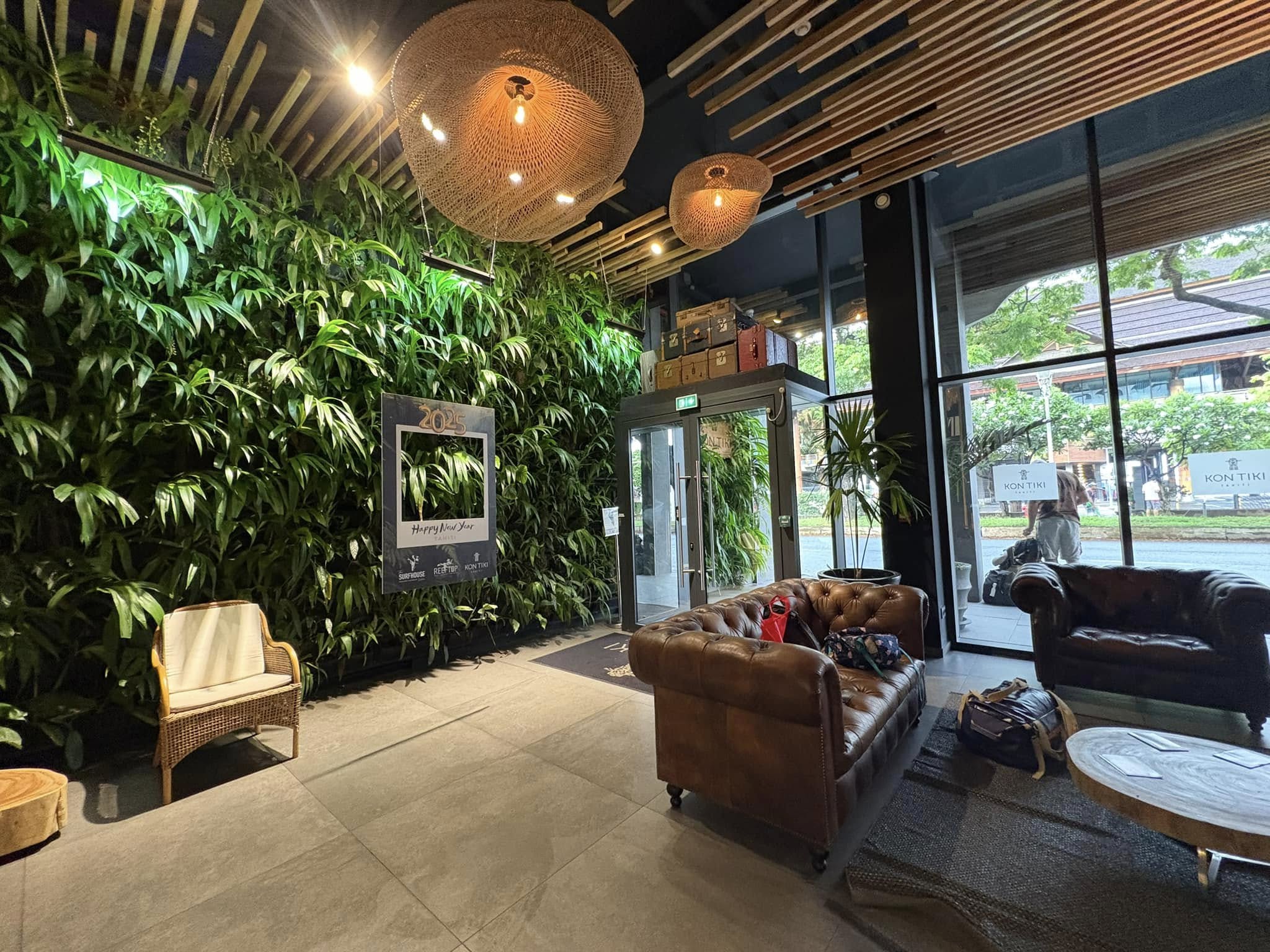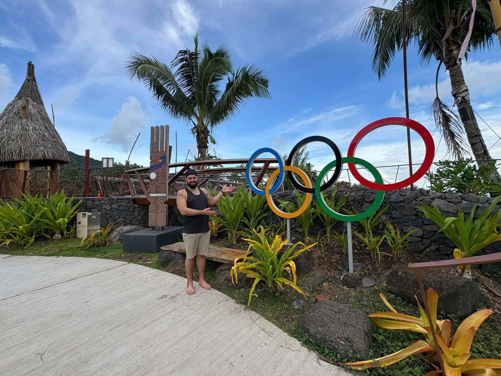 There was a large-ish gravel parking lot next to the round-about and a public beach where people hung out in truck-beds looking out towards the ocean, or in camp chairs with drinks in hand. It was a welcoming area of both locals and tourists. The waves break about 500m from shore, so the best way to see them is to hop in a boat and take a ride out. Since they were only coming in around 1m in height when we were there, we opted out of the boat ride and wandered around instead, taking in the Olympic rings that still stood in place, and a little walk along the coast. There’s a path that meanders out towards a point that’s a bit closer to where all the surfers gather in the water, but since we wanted to see more of the island, we opted to stop short and look from afar.