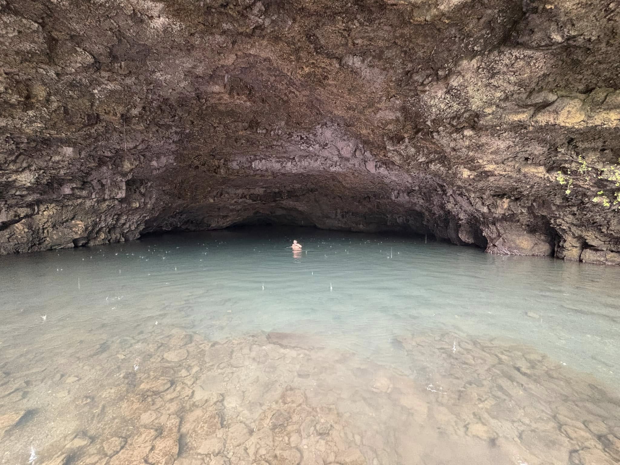 And then just around another corner we were greeted by a large open-mouthed cave of wonder. The water was dark, but crystal clear (if that makes sense). At the tip of the cave you could see fish swimming around and a rocky bottom below, but as the cave grew deeper it got darker, somehow begging A to enter. And so, he did. M and I did not. He threw his clothes onto a rock and dove into it’s depths. M and I watched from shore, admiring the soft pings of dripping water from above, and the vibrant plant life that surrounded us.